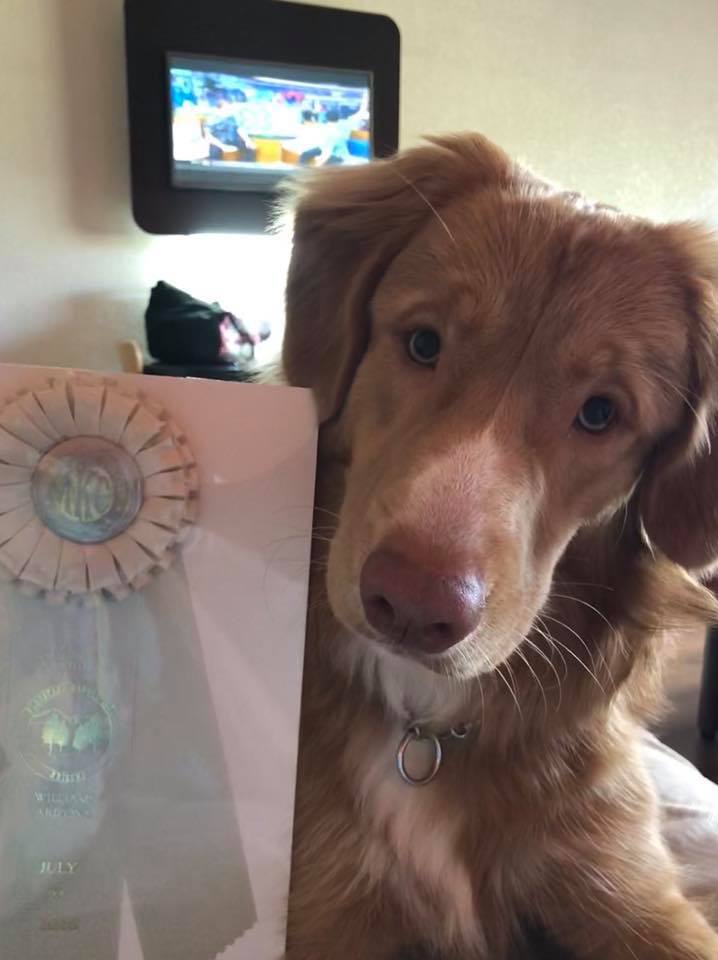 July 2018: Comet competes in his first show, taking home the points and a Puppy Sporting Group 4.